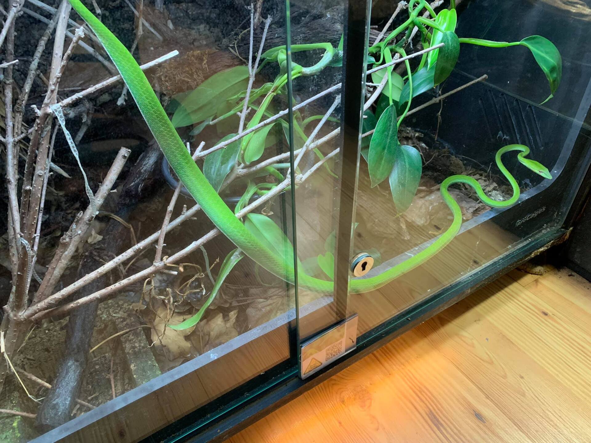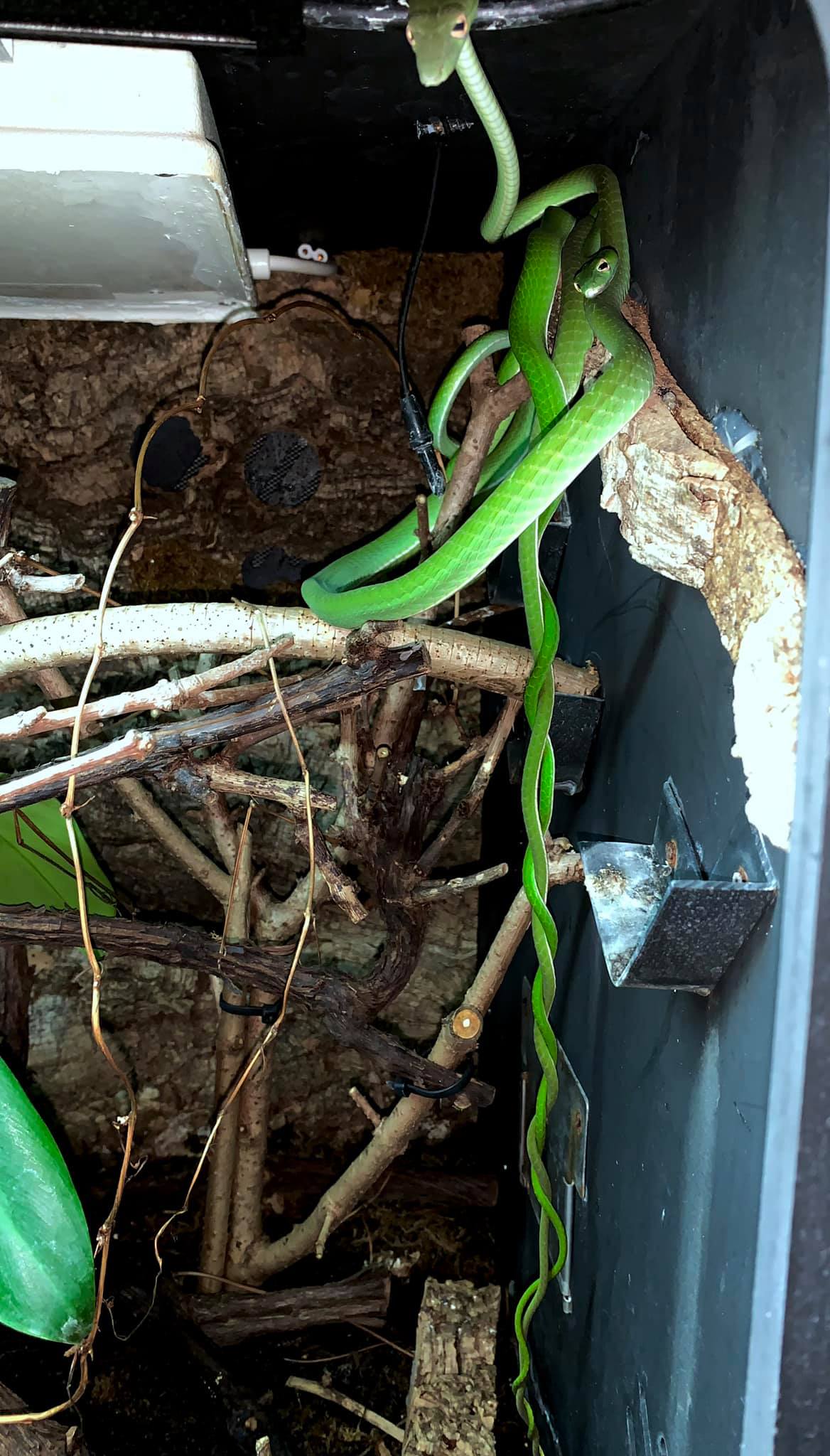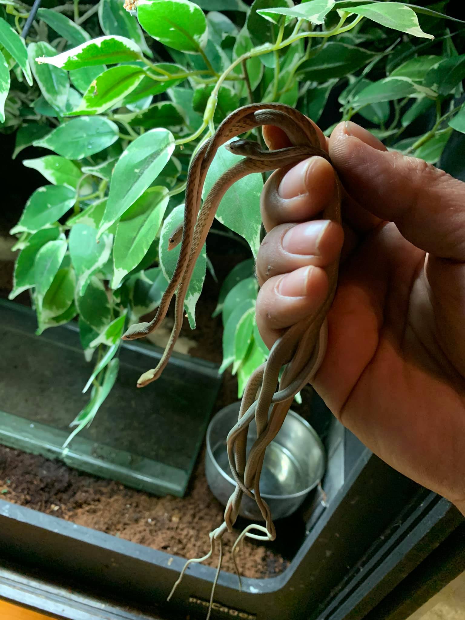 Am 05.12.19 hat sie 4 gesunde Babys geboren. Die Junge Schlangen habe ich alle zusammen in einen 90er Becken großgezogen. Schnell merkte ich, das einer der Jungtiere keine Chance hatte, gegen seine größere Geschwister beute zu mache und separierte diese in eine 120er Becken voll mit junge Jungferngeckos. In Moment ist der genau so groß wie alle andere Tiere. Alle 4 sind Männliche Tiere. Tiere haben direkt Junge Geckos gefressen. In Alter von 6 Monate haben die Semiadulte Hausgeckos erbeuten können und nahmen mit viel Geduld auch Mäuse aus der Pinzette. Heute sind die Tiere Semiadult und nehmen hin und wieder Babyratten aus der Pinzette. Ihre Lieblingsspeise bleibt jedoch unverändert Geckos und kleinere Echsen.